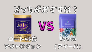 ルテインサプリ ロートV5粒アクトビジョンとEyepa(アイーパ)を6項目で比較!どっちがおすすめ?人気ルテインサプリは? 「ロートV5粒アクトビジョン」と「Eyepa(アイーパ)」はどちらも目にいいサプリメントです。 ただ、それぞれの特徴や違いがいまいち分からない、という人もいるでしょう。 本記事ではロートV5粒アクトビジョンとEyepa(アイーパ)の違い... 2024.11.02 ルテインサプリ